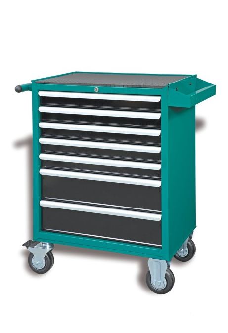 Szafka narzędziowa Honiton to solidna inwestycja zarówno do profesjonalnych warsztatów, jak i hobbystycznej majsterki – wózek z 7 szufladami i pełnym 276-elementowym wyposażeniem. Centralny zamek, boczny schowek i 2 hamulce kółek zapewniają bezpieczeństwo oraz porządek na stanowisku pracy. W całości wykonany z grubej stalowej blachy – profile, prowadnice i korpus – co gwarantuje odporność na intensywne użytkowanie . Koła o średnicy 125 mm są kierowane i wyposażone w blokady – idealne do stabilnego ustawienia wózka.