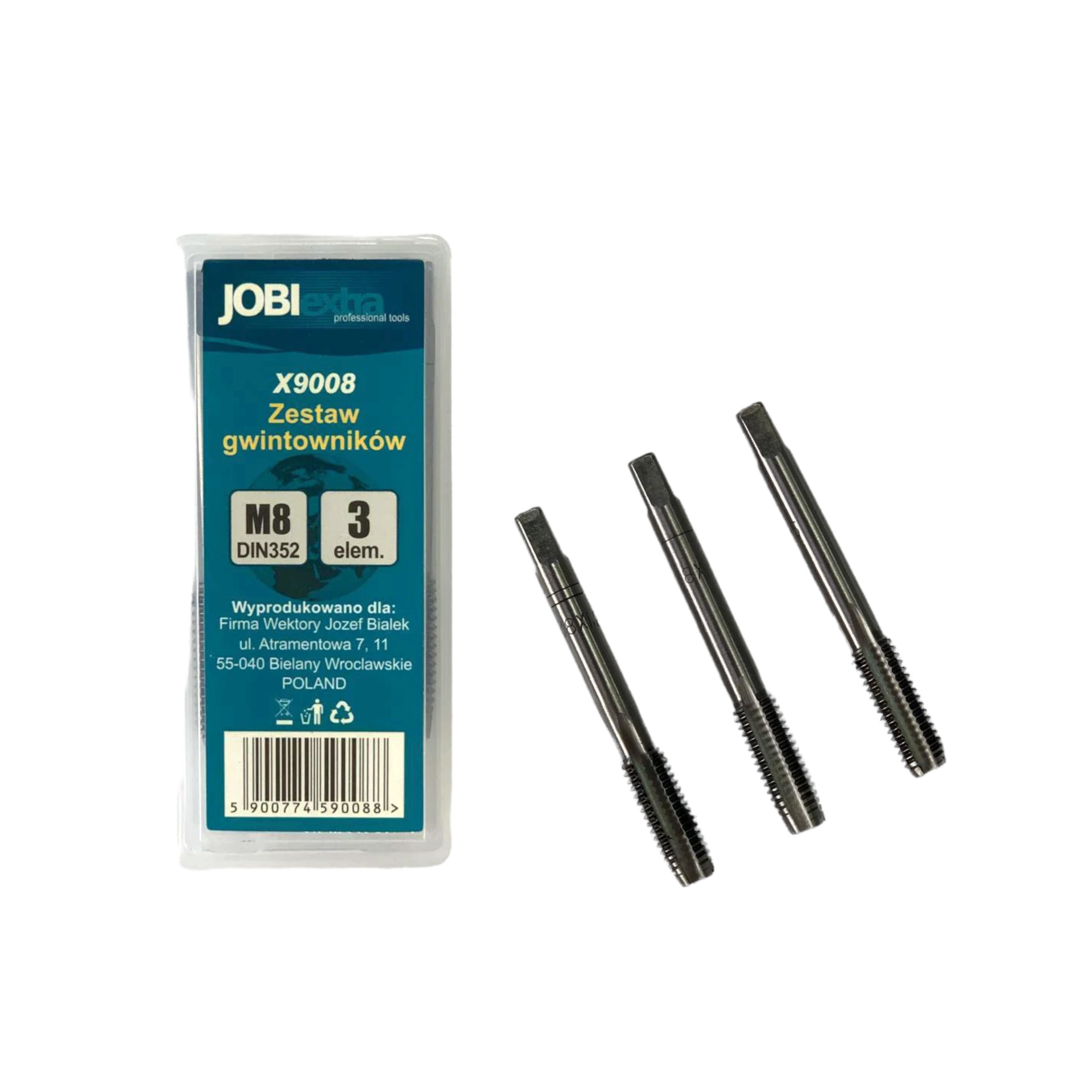 Zestaw gwintowników JOBIextra został zaprojektowany z myślą o profesjonalistach oraz majsterkowiczach oczekujących trwałości, precyzji i wygody pracy. W zestawie znajdują się trzy gwintowniki do każdego rozmiaru metrycznego – M3, M4, M5, M6, M8, M10, M12, M14, M16 – umożliwiające wykonanie pełnego procesu gwintowania otworów przelotowych i nieprzelotowych w metalu.